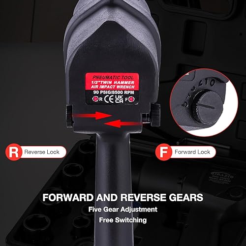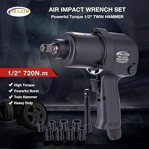 Set di Avvitatore a Impulsi Pneumatico 1/2' 720 NM Twin Hammer con 8 Bussole 12-24mm Professionale Chiave a Percussione ad Aria Svita e Avvita per Ruote Auto Furgoni Moto