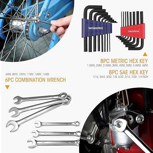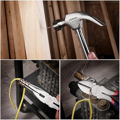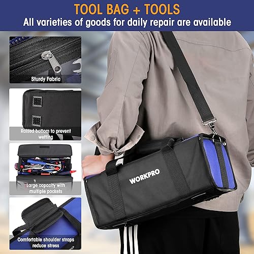 WORKPRO Set Attrezzi da Lavoro, Borsa Porta Utensili 156 Pezzi con Pinza, Chiavi Inglesi, Coltello, Chiavi Esagonali, Cacciaviti, Metro, Seghetto e Martello ecc.