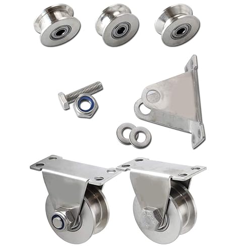 Ruote a rulli scorrevoli in acciaio inossidabile 304 da 5,1 cm, con scanalatura a U, resistenti, per binario scorrevole con staffa, capacità di carico 299,4 kg