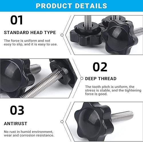 Manopola di serraggio M6 x 40 mm, 12 pezzi di serraggio a forma di stella, testa in plastica, viti a orecchie, regolazione di viti di serraggio per macchinari, industrie, attrezzature, nero