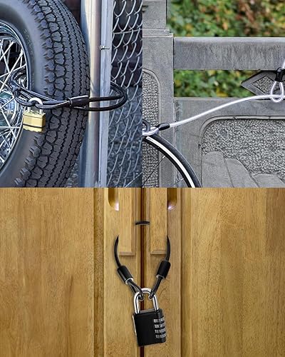 Cavo di Sicurezza in Acciaio Cavo di Bloccaggio 1 m Sicurezza Acciaio Cavo Cavo Acciaio Lucchetto Fermacavo per Mobili da Giardino Biciclette(4 PCS, Nero, Argento