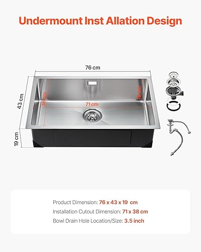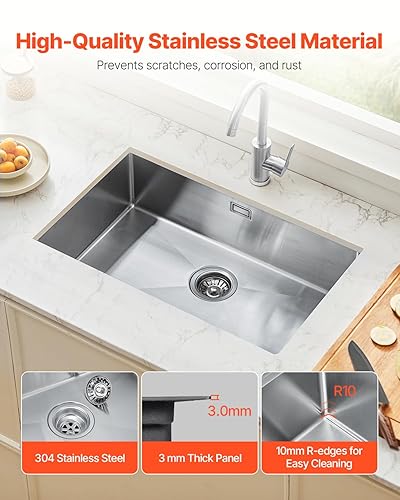 VEVOR Lavello da Cucina da 76 cm Lavello Sottopiano in Acciaio Inossidabile 304, Vasca Singola da Incasso Stile Fattoria con Accessori, Lavello Domestico per Cucina di Preparazione, Lavanderia, Bar