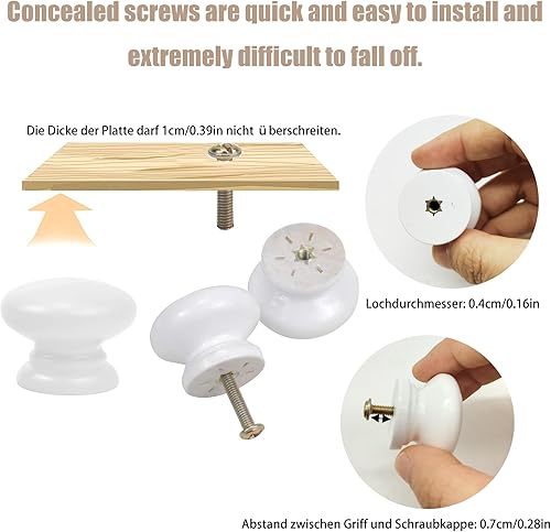 12 pezzi Bianca Pomelli per Porta in Legno Rotondo Manopole Bianche Pomelli Bianchi Legno per Mobili, armadio