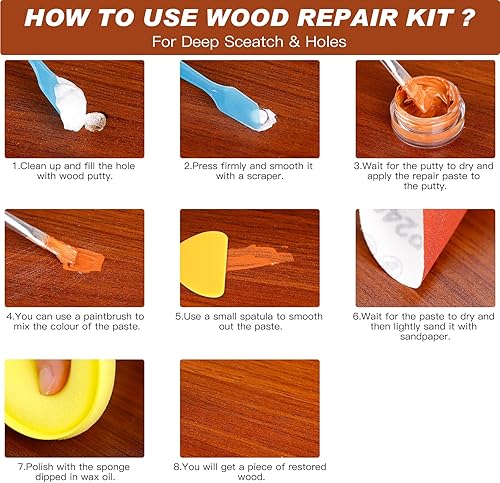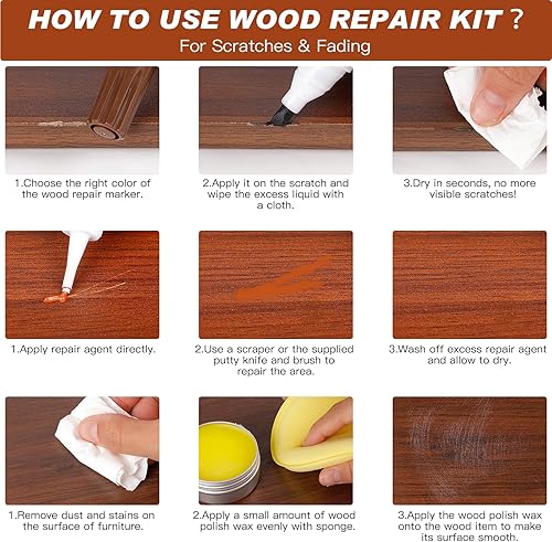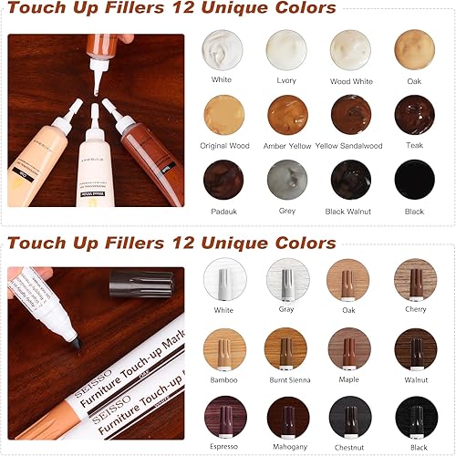 Kit Riparazione Mobili Legno, Pennarello Ritocco Legno, Stucco per Legno, 39 Accessori, Per Riparare i Graffi sui Mobili in Legno, Pavimenti, Armadietti, Piano di Lavoro e Porta