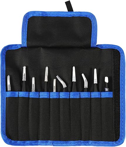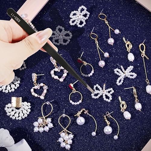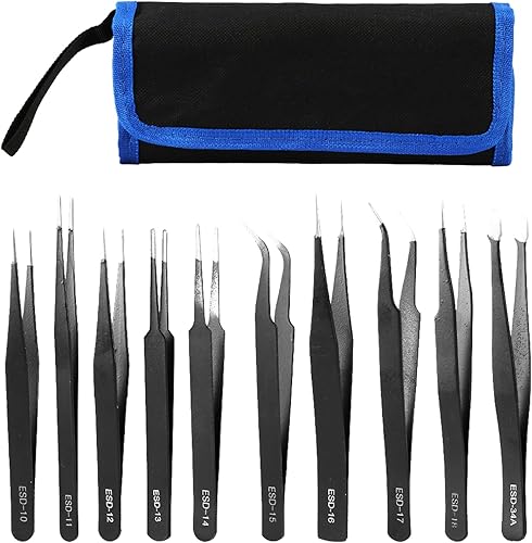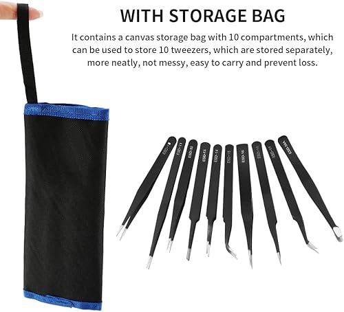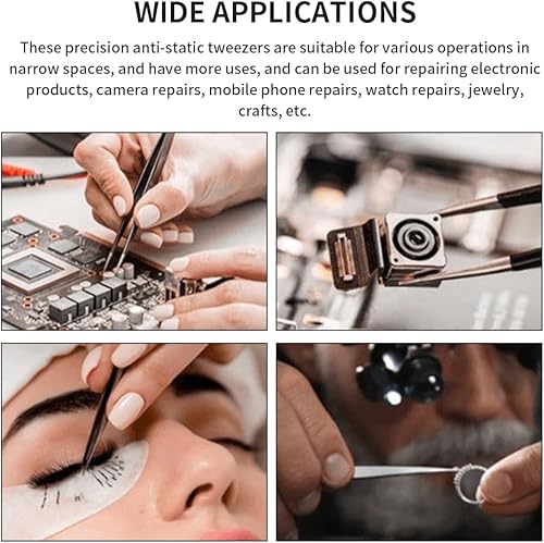 Set di pinzette di precisione, antistatiche in acciaio inox, pinzette per modellismo, pinzette per riparazioni elettroniche, gioielli di precisione (nero + argento)