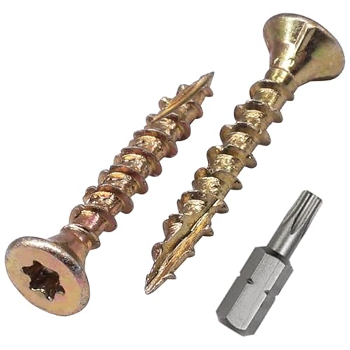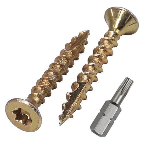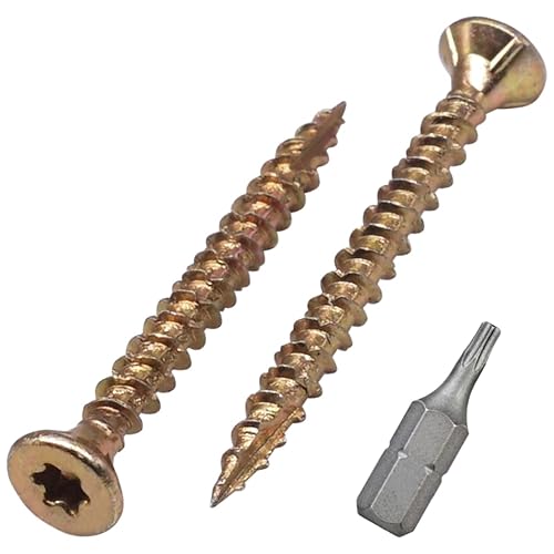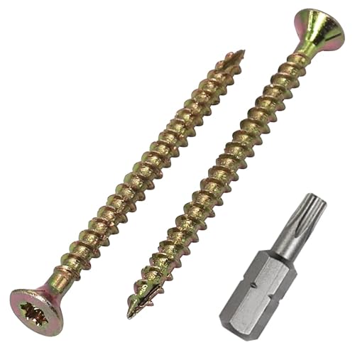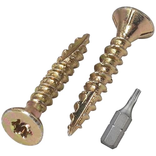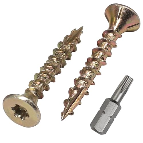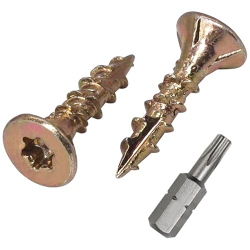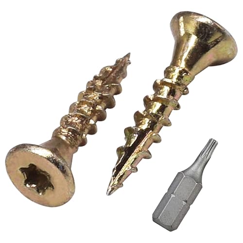 (100 pezzi) Viti per legno in acciaio zincato 3,5 x 25 mm, testa svasata, viti per truciolato giallo