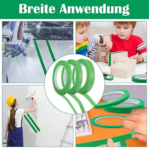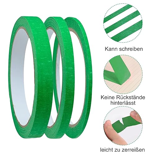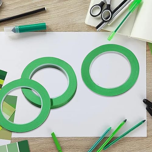 YzmrBdqc 3 rotoli di nastro fine per pittura artistica, 3 mm/7 mm/12 mm di larghezza x 22 yard, nastro adesivo impermeabile per pittura auto, fai da te (verde)