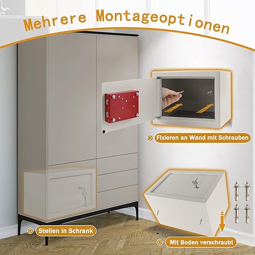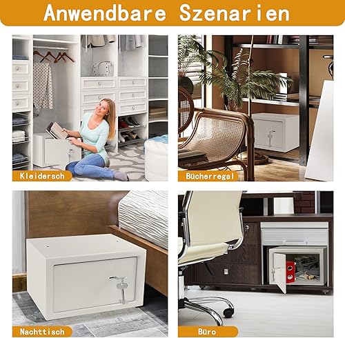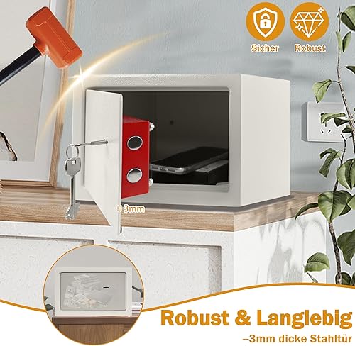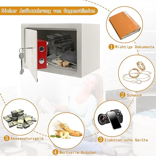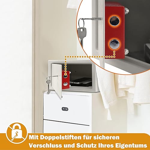 Cassaforte per mobili con serratura a doppia barba, cassaforte per chiavi, cassaforte con chiudibile, per casa, ufficio, hotel, 35 x 31 x 50 cm, colore bianco