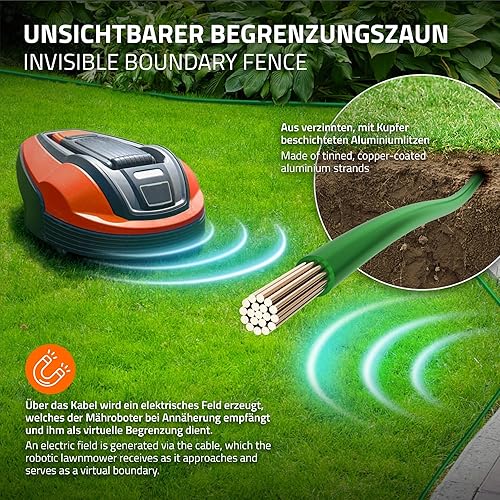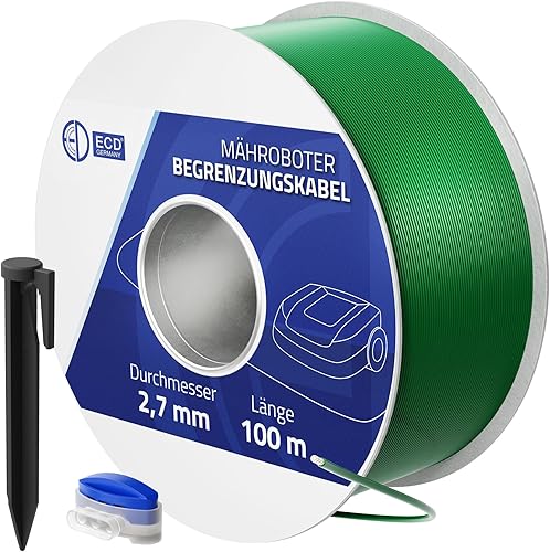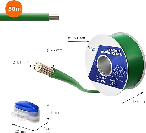 100 m di Filo di Delimitazione Universale per Tosaerba Robot 12 Connettori per Cavi Ø 2,7 mm Rame Stagnato Rotolo di Cavo Perimetrale Compatibile con Gardena Bosch Husqvarna Worx Honda