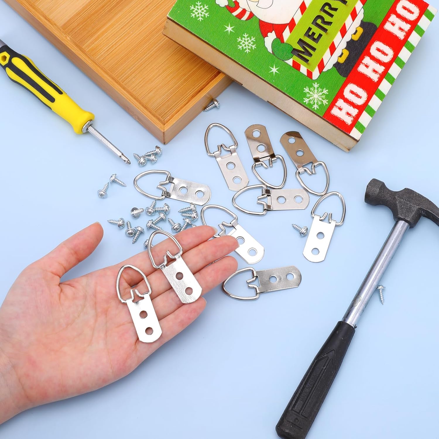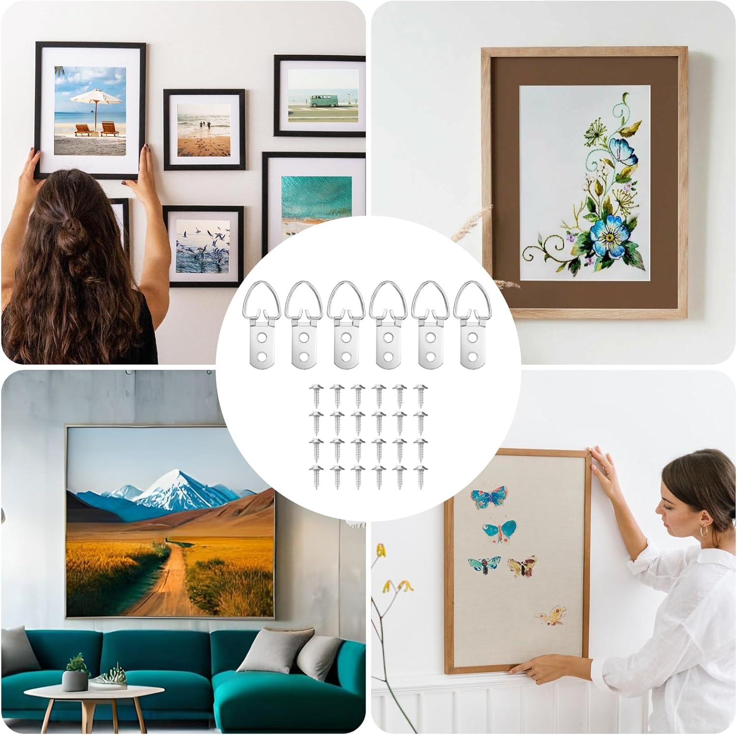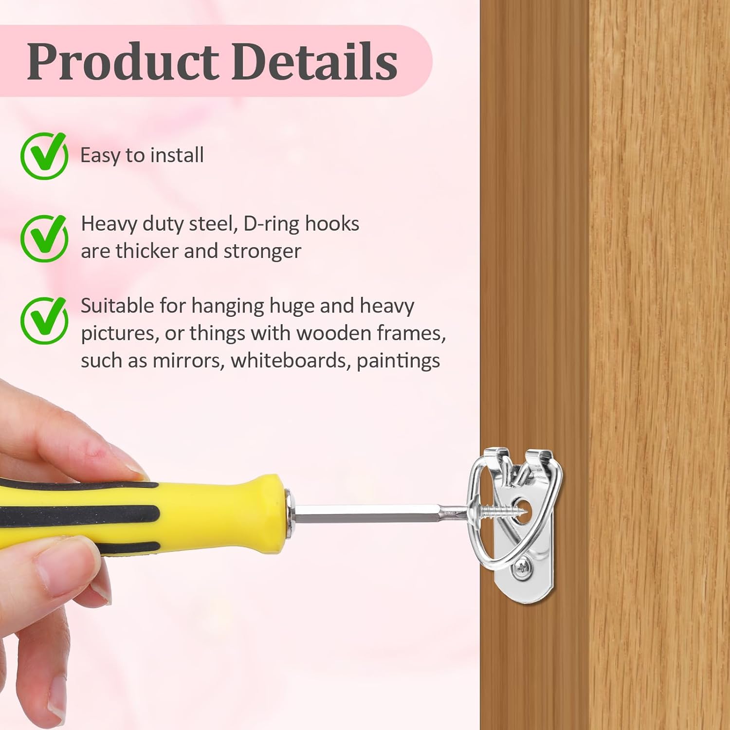 Gancio per foto ad anello a D, per immagini pesanti, gancio per foto ad anello a D, super pesante, con viti per appendere dipinti, opere d'arte, cornici (12 pezzi a 2 fori)