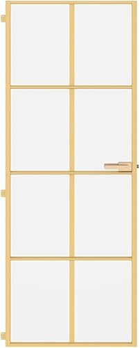 Mobile Porta Interna Nera 93x201,5cm Vetro Temperato Alluminio Sottile, Porta Ingresso, Portoncino Ingresso Esterno per Esterni, Giardino, Terrazza