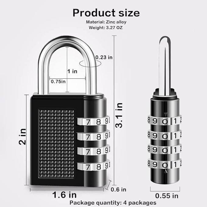 Lucchetto a combinazione Padlock a 4 cifre, resistente alle intemperie, con codice numerico, 4 pezzi