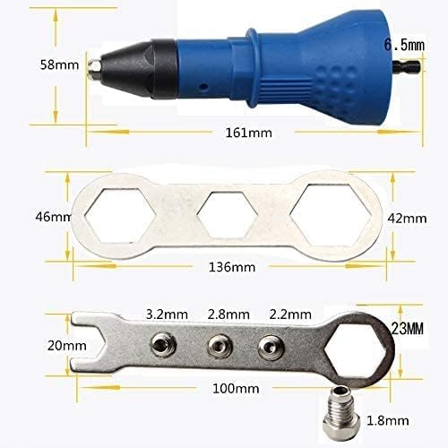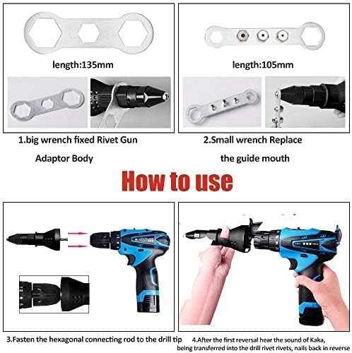 Pistola rivettatrice per trapano elettrico a batteria - Pistola rivettatrice elettrica Riloer, adattatore per trapano avvitatore a batteria , con 2 chiavi + 4 ugelli