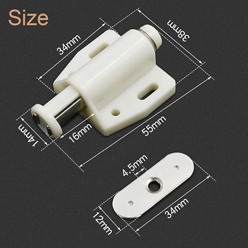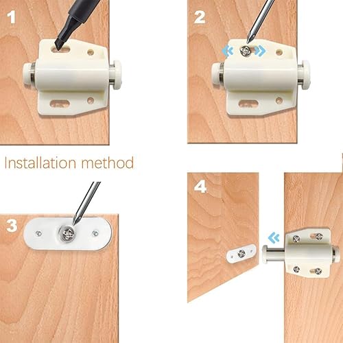 4 Chiusure Magnetica a Scatto per Ante Mobili - Ideali per Porte Pesanti, Armadi e Cassetti - Chiusure Magnete a Molla e a Spinta - Facili da Usare e Installare