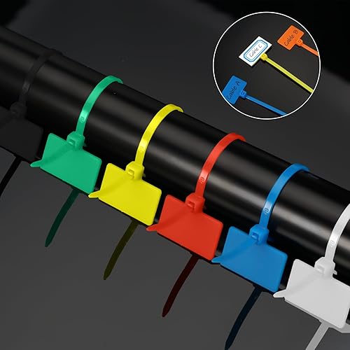 500 Pezzi Stringicavo Fascette Cavi Colorate, 100mm x 3mm Fascette di Cablaggio Professionali, Fascette Nylon Autobloccanti Cablaggio Riutilizzabili con Etichetta per Casa Ufficio Giardino