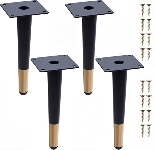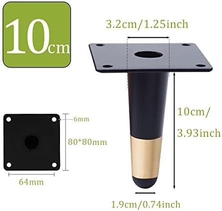Piedini per Mobili 4Pcs Gambe in Metallo Piedini per Mobili Verticali a Cono Gambe per Tavoli Piedi per Armadietto per Tavolino da Caffè Divani (10cm Altezza,Nero Oro)