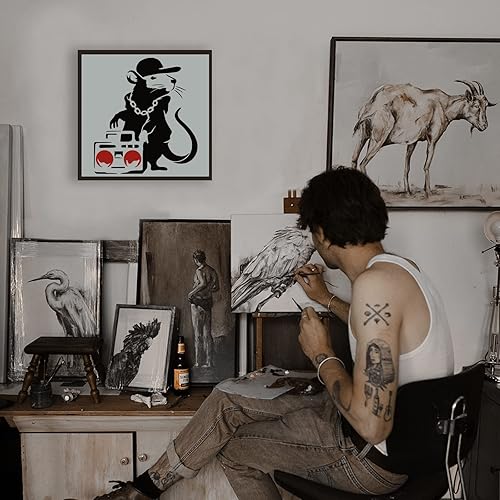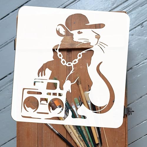 FINGERINSPIRE Banksy Hip Hop Rat Stencil 30x30cm Riutilizzabile Banksy Rat Stencil DIY Art Radios And Mouse Painting Template Banksy Theme Stencil per Dipingere su Legno, Pareti e Mobili