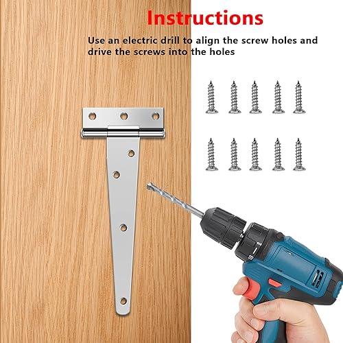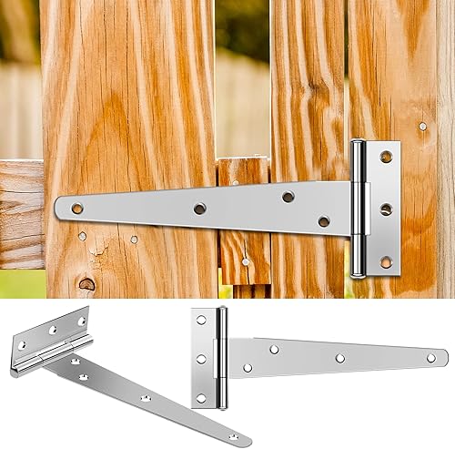 Chstarina 4 Pezzi 150mm Cerniere a T per Cancello in Ferro Cerniere a T Resistenti Cerniere a Cancello per Porte in Legno per Portoni e Porte di Fienili Argento
