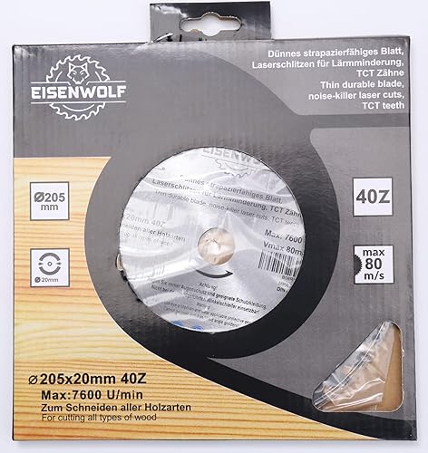 Lama per sega circolare di alta qualità, 205 x 20 mm, 40 denti, per legno