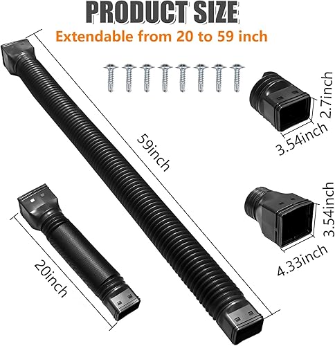 Vikye 2 Pezzi di Estensione per Grondaia per Grondaia, 20-59 Pollici per Grondaia Estesa, Prolunga per Scarico Retrattile (Nero)