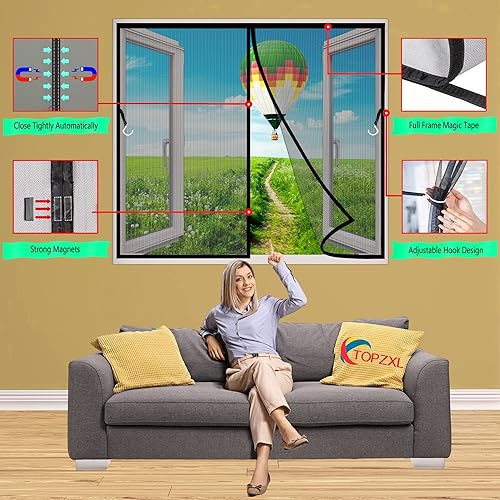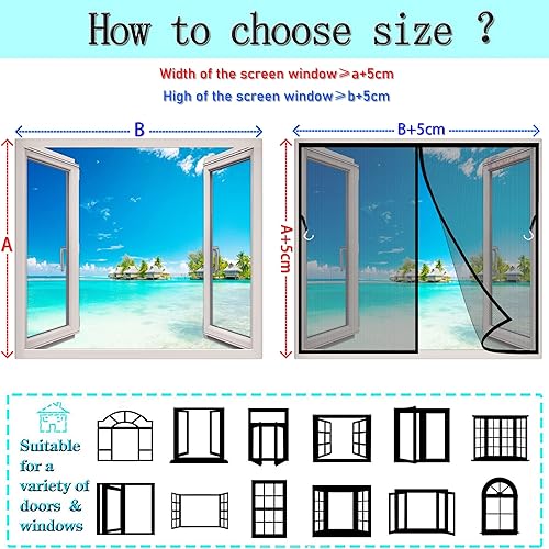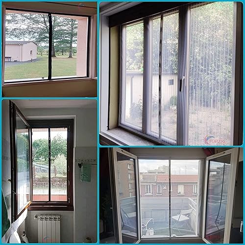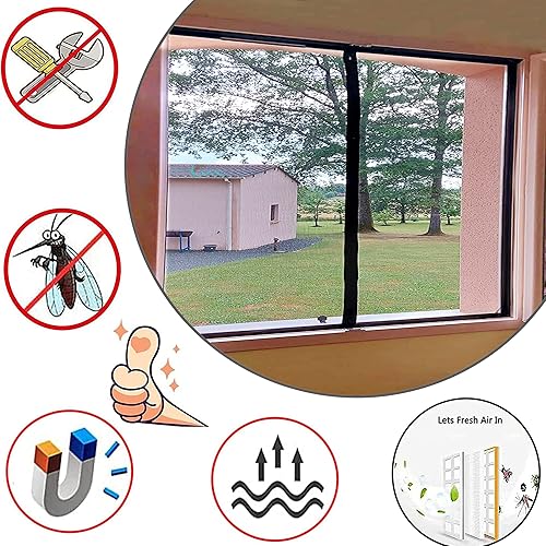 Finestre Esterne con Zanzariera 155x155 cm Zanzariera Tenda, Adsorbimento Magnetico Pieghevole Rete, Finestre D'Ingresso Finestre Cortili Nero Z