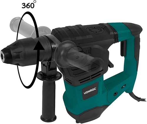 VONROC Martello rotante perforatore 1800W-6 Joule. 4 funzioni. Velocità regolabile - SDS plus. Incl. impugnatura,3 punte e 2 scalpelli