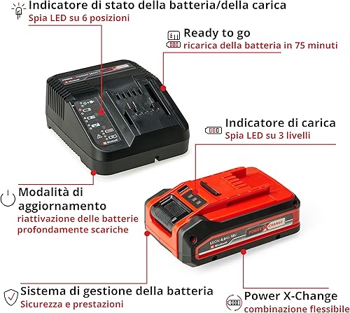 Original Einhell 4 Ah PLUS Power X-Change Starter Kit (1 batteria X 18 V 4 Ah PLUS, 1 caricabatterie 3 A, tempo di ricarica 75 min, adatto per tutti i dispositivi Power X-Change)