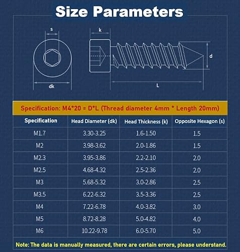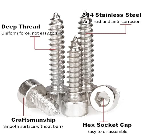 M3 Viti Autofilettanti ad Esagono Incassato, Viti a Brugola Testa Cilindrica 304 Acciaio Inossidabile Ferramenta Elementi di Fissaggio M3x10mm (100 Pezzi)