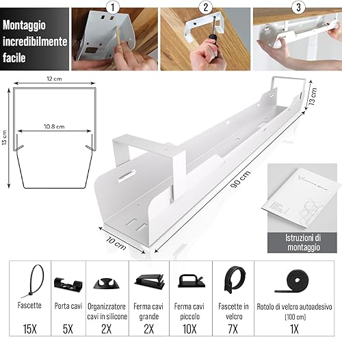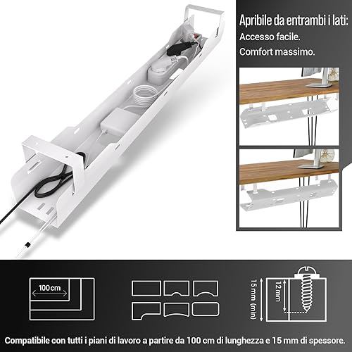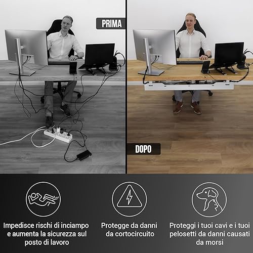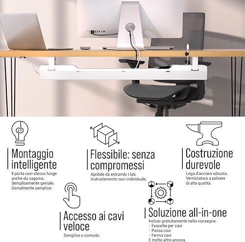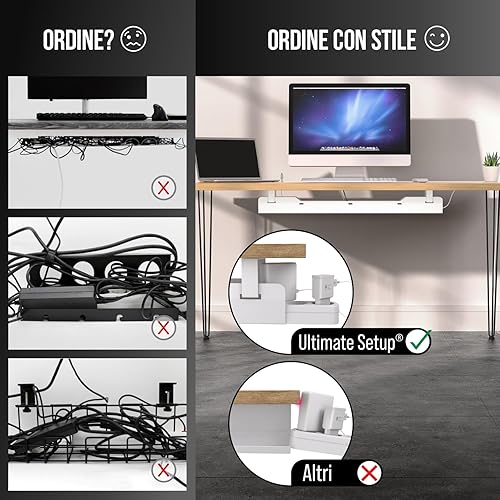 Canalina scrivania - Cable management scrivania - Raccogli cavi scrivania sotto - Porta cavi scrivania - nascondi cavi scrivania - Organizer cavi scrivania - Passacavi scrivania nera - Ultimate Setup®