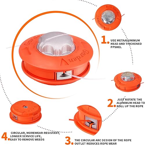 Alluminio Testa Decespugliatore, con Filettatura Sinistra M10, Testa Filettata Easy Load & Go è Adatta per Tosaerba Nylon 2,4 mm 30 m (Colore Della Corda Casuale), Testina Falciante