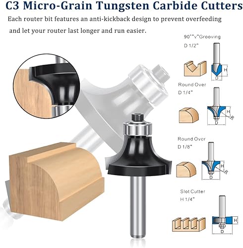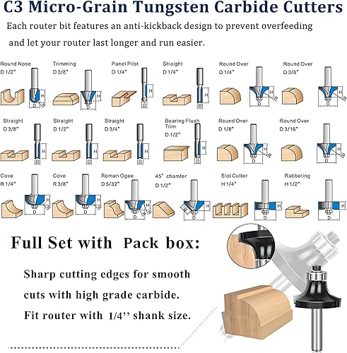 MAYLINE 26Pcs 6.35mm Gambo Flauto Punta Dritta Fresa 1/4, per Legno Fresa nel Carburo di Tungsteno Strumento di Lavorazione Del Legno, Frese ferro PuntePunta Route (LARGE, PANEL)