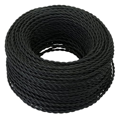 Cavo in tessuto, rivestito in tessuto, cavo di alimentazione elettrico a 2 fili, 2 x 0,75 mm², intrecciato, 5 m, colore nero