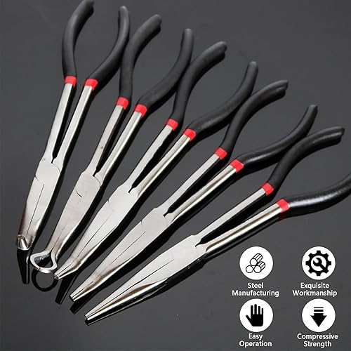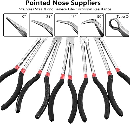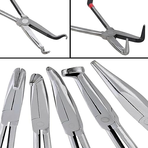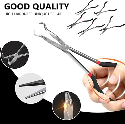 Pinza Multiuso Set, Set di 5 Pinze per Gioielli Allungate in Acciaio,inze A Presa Lunga per Tubo Flessibile E Pinze A Becchi Mezzotondi