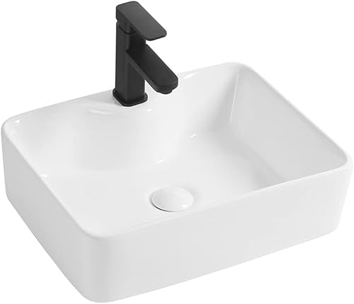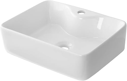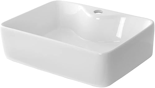 Lavabo da appoggio Rettangolare 48x37 cm con Foro Rubinetto, Design Moderno in Ceramica Bianca Lucida