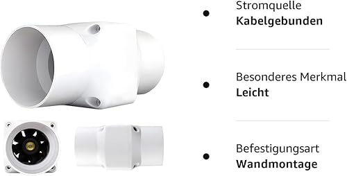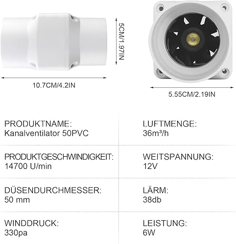 Ventilatore tubolare da 2', piccolo ventilatore di scarico, per ufficio, bagno, WC, cucina, serra, diametro 50 mm, 36 m³/h