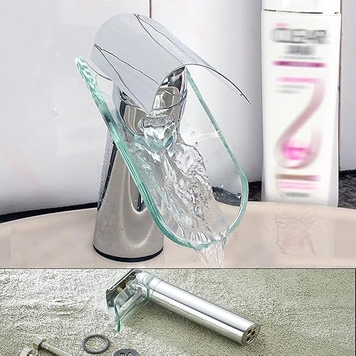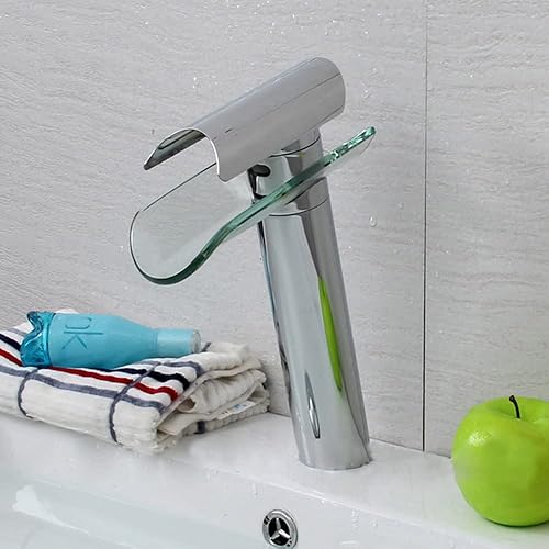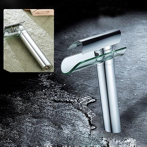 Rubinetto per lavabo a cascata, moderno in vetro, a cascata, in ottone, da cucina, da bagno