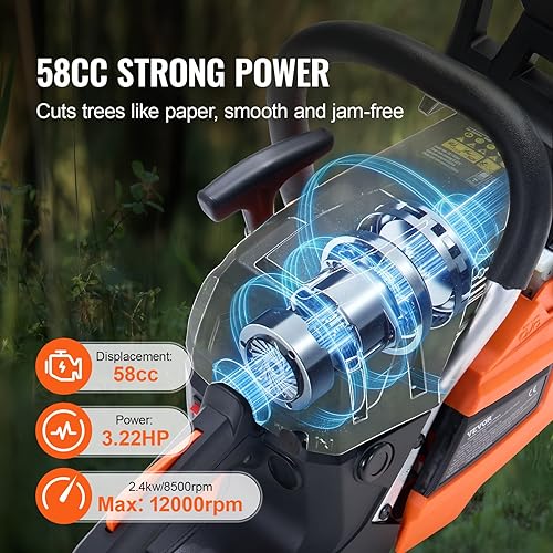 VEVOR Troncatrice Guidacatena 50,8 cm Motosega a Benzina Senza Fili 58CC 3,22HP, per Taglio di Rami di Alberi, Potatura di Alberi, Disboscamento, Taglio Forestale in Fattorie, Giardini, Giardinaggio