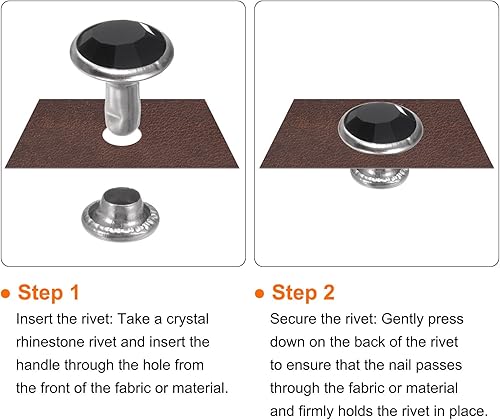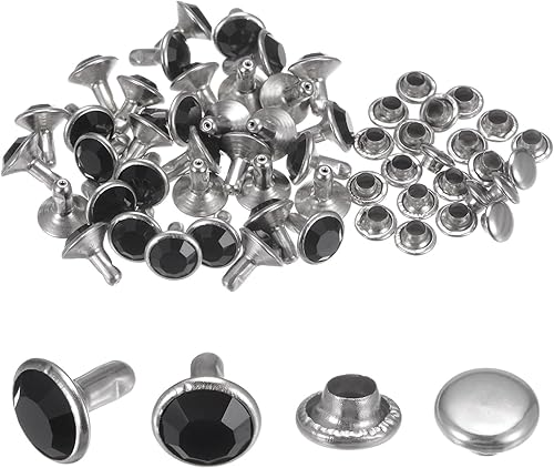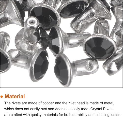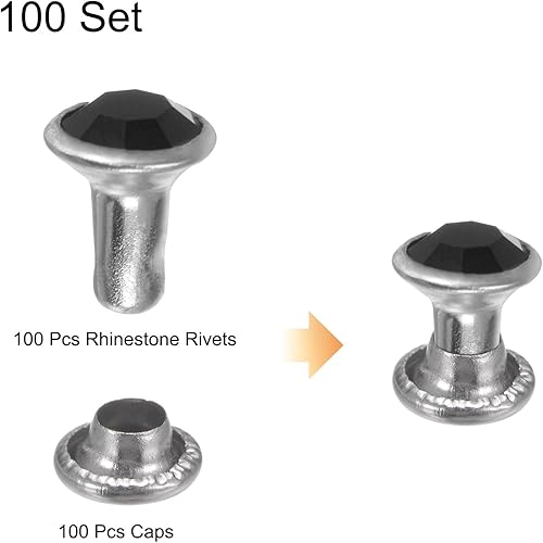 100pz Rivetti in Cristallo da 8mm, Rivetti Strass Rapid Stud per Abbigliamento, Lavorazione Pelle, Arti Tessili, Decorazione Artigianato in Pelle Fai da Te, Nero