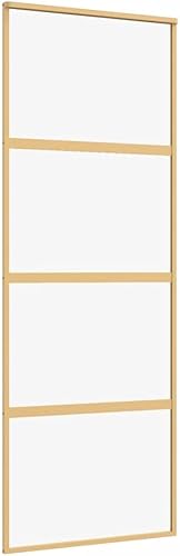 Porta,Scorrevole,con Set Binario,Kit Montaggio,in Vetro ESG e Alluminio,Oro e Trasparente,102,5x205 cm,Set Porte Sorrevoli con Kit Binario,Porta Scorrevole in Vetro e Alluminio