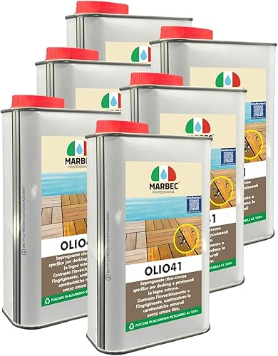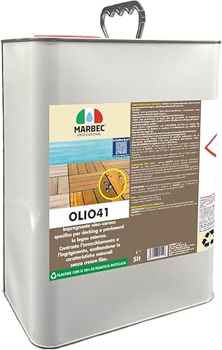 MARBEC OLIO41 1LT Impregnante cerato per legno esterno per effettuare trattamenti protettivi su pavimenti e decking.