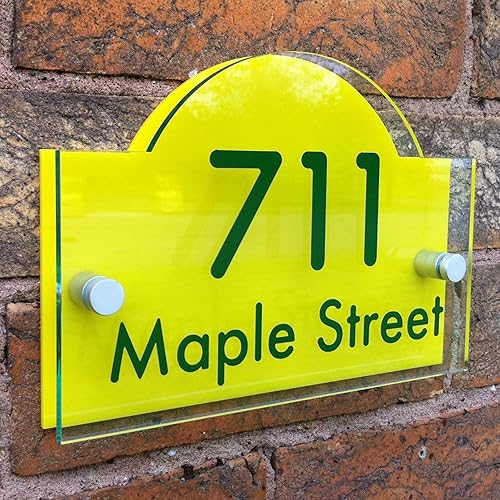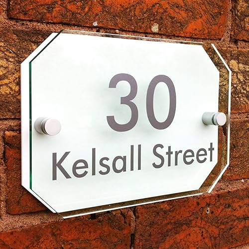 Cartello personalizzato con numero civico, in Acrilico effetto vetro di alta qualità, Scelta di caratteri e colori, 2 parti in acrilico, con nome della strada