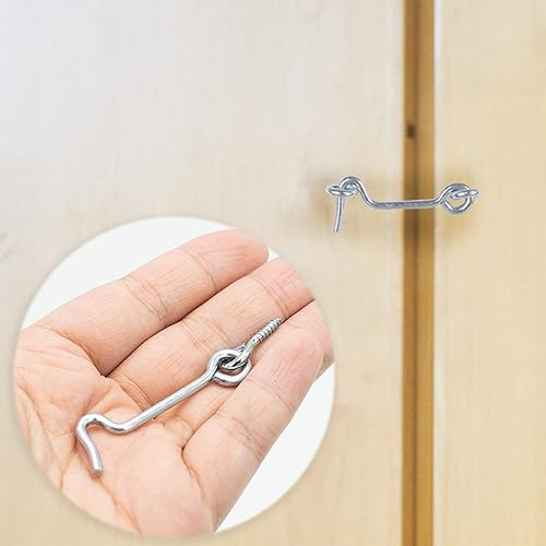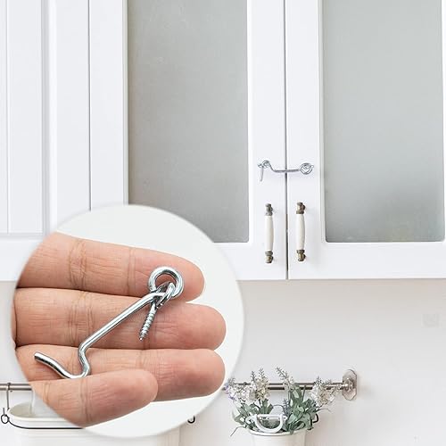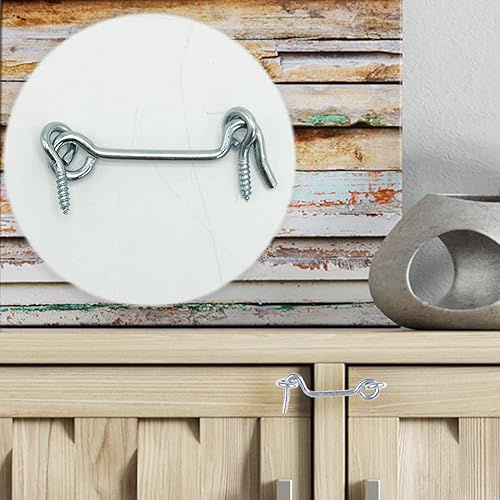 5 ganci tempesta con occhielli, 50 mm, fissaggio tempesta con filettatura in legno per persiane, cancelli e porte, ganci e occhiello in metallo zincato
