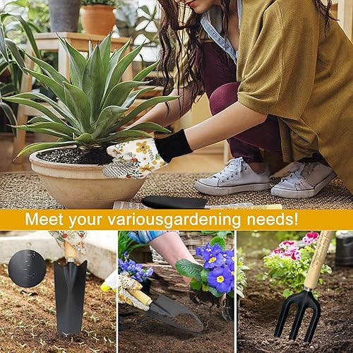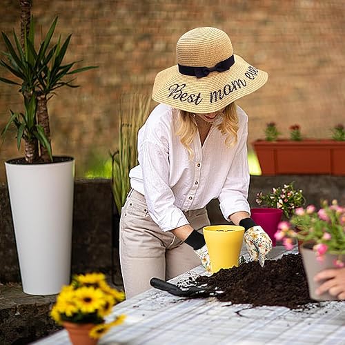 Attrezzi da giardinaggio per la mamma, 3 pezzi attrezzi da giardinaggio resistenti con grembiule impermeabile e antimacchia, guanti e cappello di paglia, set di attrezzi da giardino antiruggine, per