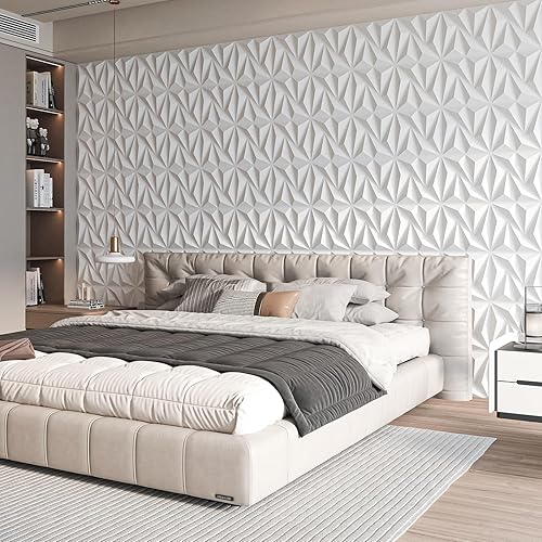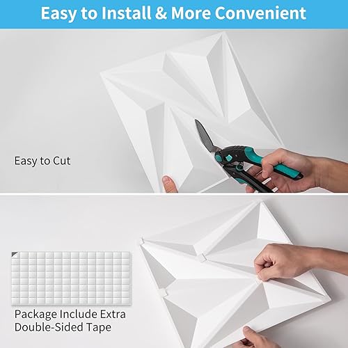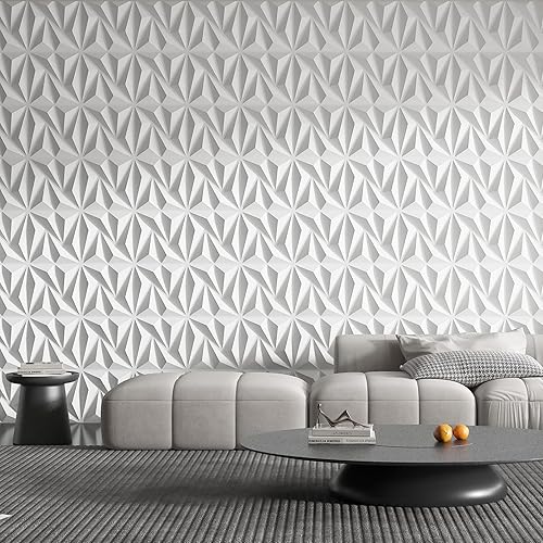 3D 3D pannelli murali decorazione murale interna con nastro adesivo in PVC diamantato per soggiorno foyer camera da letto hotel ufficio 30 x 30 cm 50 pezzi Bianco