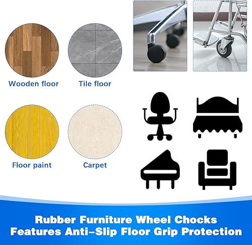 Fermaporta per mobili da letto, confezione da 4 fermi per mobili per evitare scivolamenti, per tutte le ruote di divani, sedie e letti, fermaporta in gomma per evitare graffi (nero)