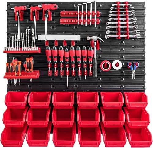Parete degli attrezzi con scatole impilabili, 1152 x 780 mm, set di supporti per attrezzi e 20 pezzi