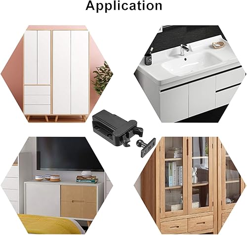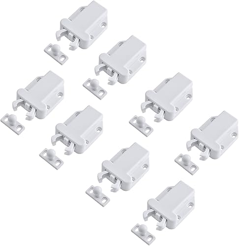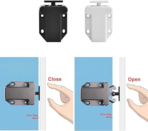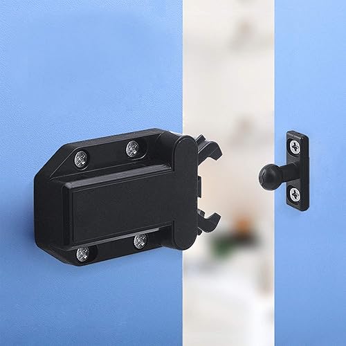 LIKERAINY Push to Open Chiavistelli per Porte Plastica Rullo Chiusura a Scatto Serratura per Porta Armadi da Cucina Cassetti Casa Mobilia Bagno Credenza Nero (8 Pcs)
