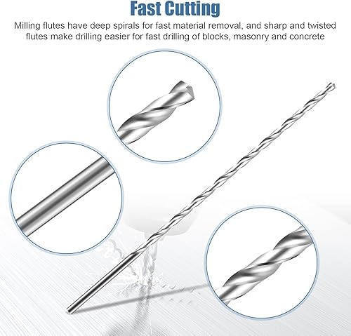 Extra Lungo HSS Punta Trapano Diametro 4mm Lunghezza 200mm, Punta Elicoidale Extra Lunghe In Acciaio ad Alta Velocità, Trapano a Coclea Codolo Dritto per Legno, Alluminio, Plastica