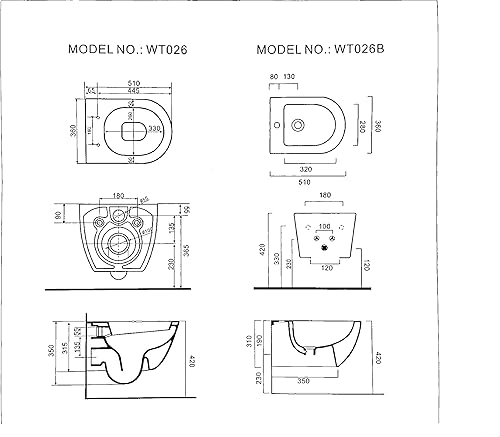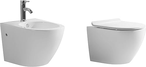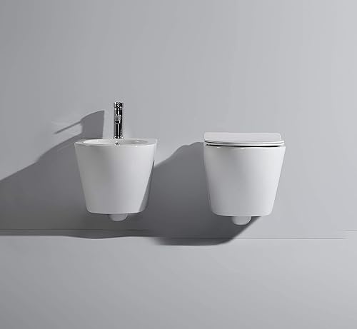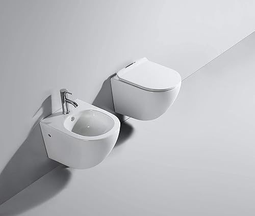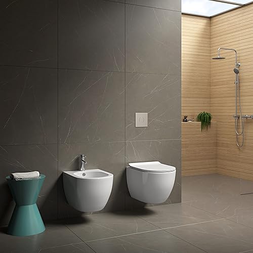 Sanitari sospesi Installazione a Muro Vaso WC Rimless, Bidet e Sedile termoindurente con Chiusura rallentata