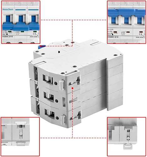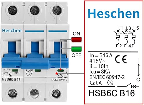HSB6C, interruttore miniaturizzato con corrente 16 Amp, 3 poli, tipo B, capacità di rottura 6 kA, montaggio su guida DIN